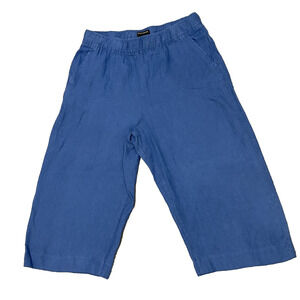 Tahari Essentials 100% Linen Wide Leg Pants Womens Size XL Loose Blue Cropped