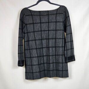 Tahari Extra Fine Merino Wool Sweater Boatneck Gray and Black Plaid M