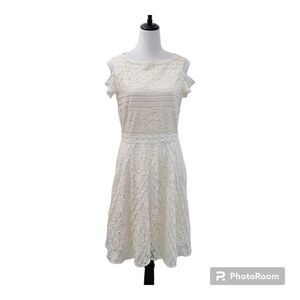Tahari Eyelet Lace Overlay Off Shoulder Dress Mini Back Zipper Flowy HOCO Size 6