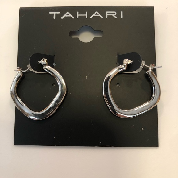 Tahari Fashion Earrings Silver tone Hoop Style Approximately 1”
