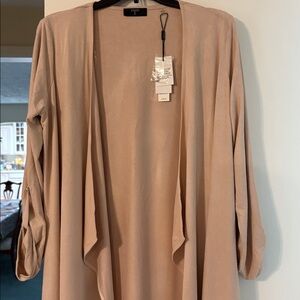 Chic Tahari blush faux leather long (calf length) top. Ideal for modern style. Very light weight and soft chamois feel to it.