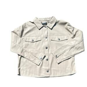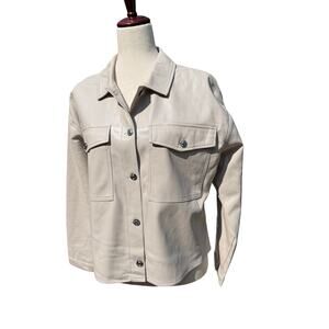 Tahari Faux Leather Jacket in color Taupe Beige Women’s Medium NWT Silver Buttons