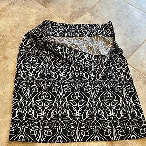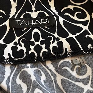 Tahari Fitted Stretch Knee Length Pencil Skirt Black White Size 2 High Rise
