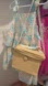 Charming floral dress with bow straps. Features blue and peach flowers. Perfect for casual outings.