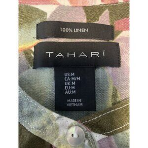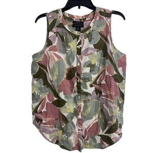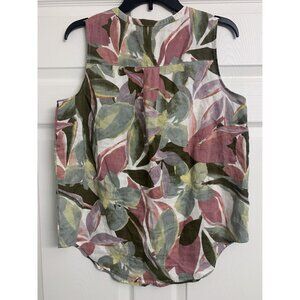 Tahari Floral Linen Sleeveless Coastal Grandma Blouse Size M Lightweight