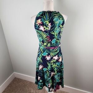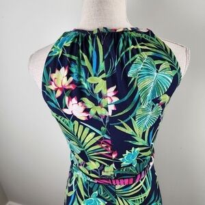 Tahari Floral Print A Line Midi Lined Dress With Keyhole Front Opening Size 2