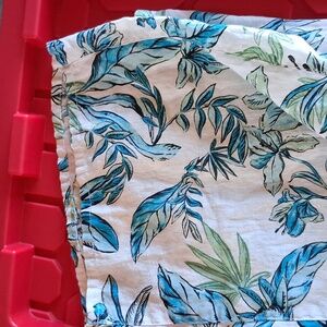 Tahari Floral Print Linen Pants Wide Leg Medium. Blues And Greens. Elastic Waist