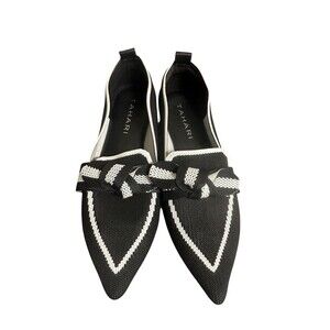 Tahari Florentia Career Black White Trim Knit Comfort Flat Shoe Size 9