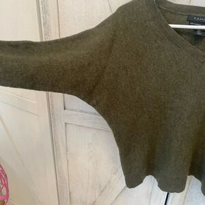 Tahari 100% merino wool sweater in a forest green leaning toward a dark olive green. Pre owned in gently used condition with no visible flaws.