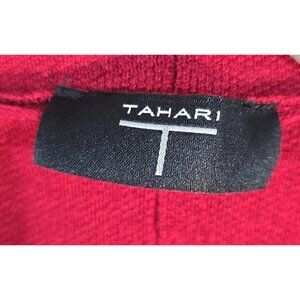 Tahari Fringed Cardigan Shawl Collar Belted Wrap Dropped Shoulders Burgundy L