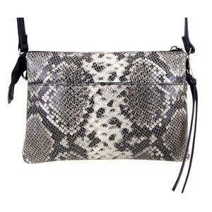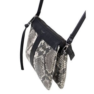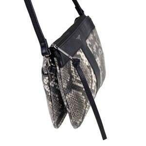 Tahari GRAY BLACK GENUINE LEATHER SNAKE PRINT X-BODY SHOULDER BAG CLUTCH HANDBAG
