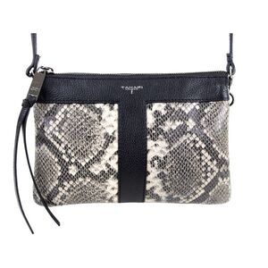 Tahari BLACK GRAY GENUINE LEATHER SNAKE PRINT X-BODY SHOULDER BAG CLUTCH HANDBAG PURSE