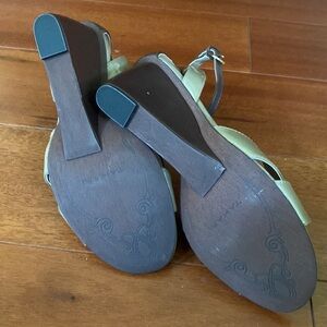 Tahari Gianna taupe and brown patent leather open toe wedge sandals NWOB. Small mark on heel as pictured