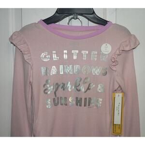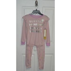 Tahari Girl 2Pc Hacci Pajama's Pink Glitter Rainbows Sparkle & Sunshine 5/6 $40