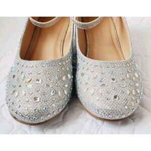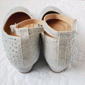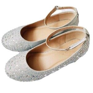 Tahari Girl Dress Shoes Sz 3 Rhinestones Silver Sparkle Heels Ankle Strap