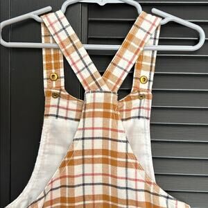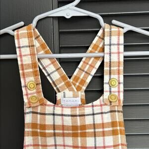 Tahari Girl’s Brown and White Plaid Overall Dress, Size 4T
