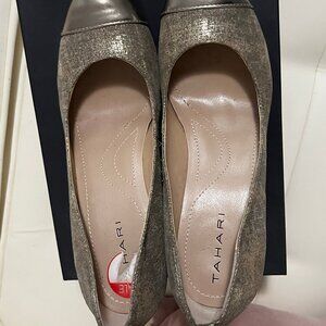 - Beautiful, unique gold heels, perfect for upcoming holiday season