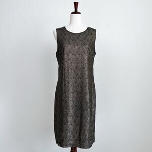 Tahari Gold Metallic Lace Sleeveless Fran Dress NWT