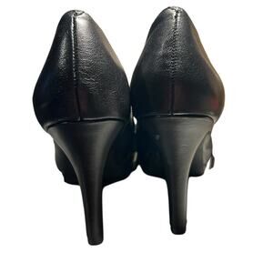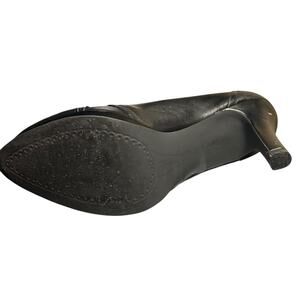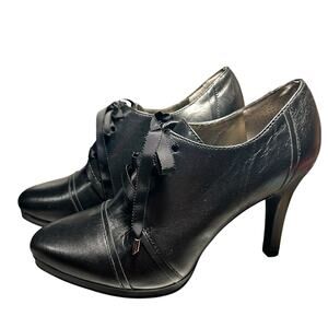 Tahari Grace Shoes Healed Leather Black Pointed Toe Victorian Lace Up SZ 7.5
