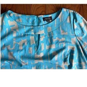 Tahari Graphic Print Crepe de Chine Shift Dress, Keyhole, Turquoise, size 14W