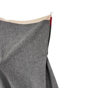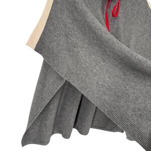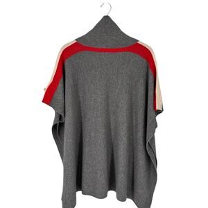 Tahari Gray Cashmere Wool Knit Red White Stripe Mock Neck Cape Poncho Topper