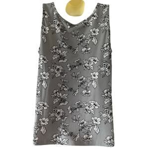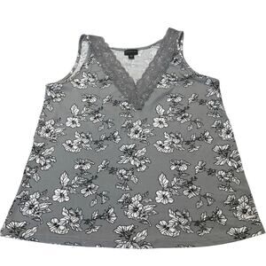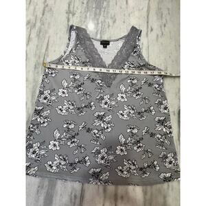 Tahari Gray Floral Print Camisole Sleep Top Lace Woman Size Medium Comfy Stretch