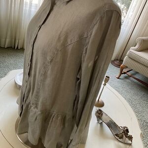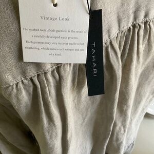 Vintage look with a peplum bottom in this all linen blouse. NWT. Pale gray that goes with so many colors by Tahari.