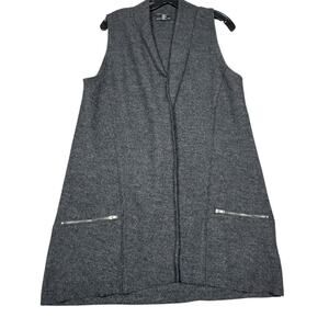 Tahari Gray Merino Wool Vest Size L | Longline Sleeveless Jacket