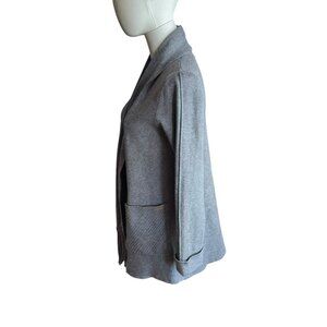 Tahari Gray Open Front Shawl Collar Sweater Fringe Hem Cardigan Size S