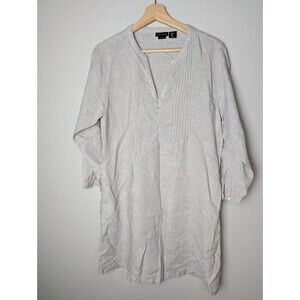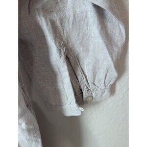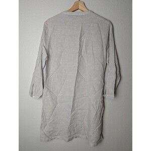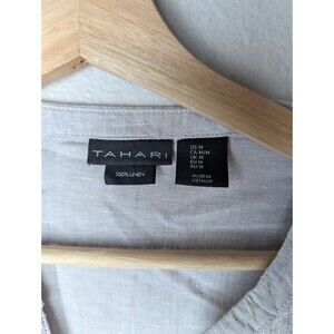 Tahari Gray Taupe 100% Linen 3/4 Sleeve Pleated Popover Shirt Dress Sz M 191