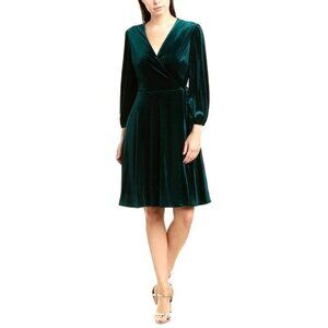 Tahari Green Velvet Faux-Wrap Dress w/Pockets Size 14W 1X Holiday Christmas Plus