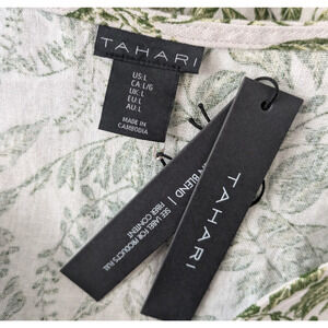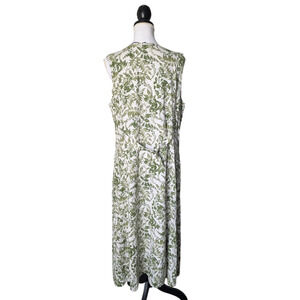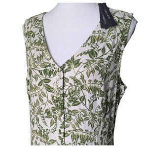 Tahari Green Vine Leaf Print Linen Blend Button Front Midi Dress New Size Large