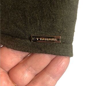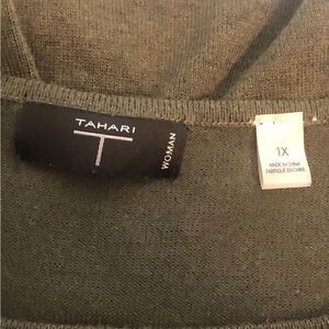 Tahari Hi lo Tunic with round neck. Size 1X. Green. Logo tag on lower hem. Side slits.