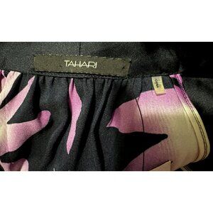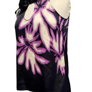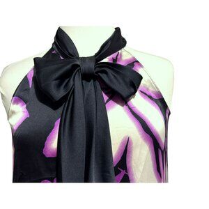 Tahari Hi-End Losa High Neck Tie Bow Floral Blouse Black Violet XS NEW $238