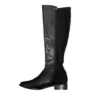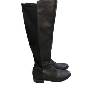 Tahari High Knee Boots 9.5 Black Leather Flats Minimalist Old Money Comfort