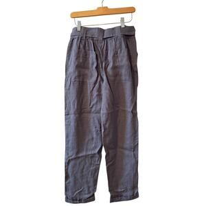 Tahari High Waisted Straight Leg Belted Linen Pants Gray S