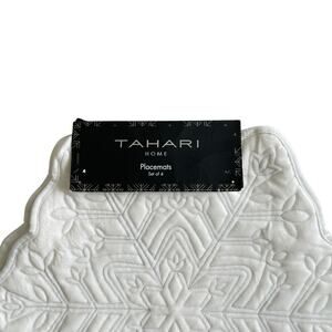 Tahari Home White Snowflake Velvet Placemats Set of 4 Christmas Holiday NEW