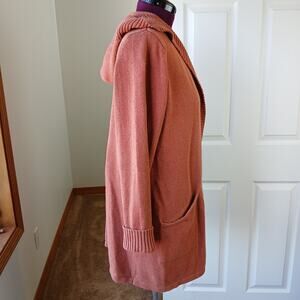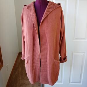 Tahari Hooded Orange Cardigan Sweater 1X pockets open front wrap long duster
