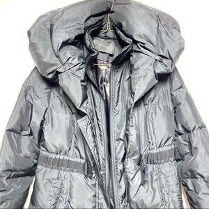 Tahari Hooded Waterfoul Feather Down Puffer Black Jacket S