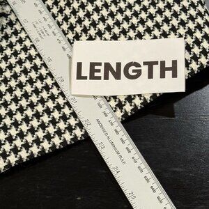 The Tahari Houndstooth Fringe Size 16 Black White Faux Wrap Knee Length Women's Skirt is a stylish and versatile piece perfect for various occasions such as travel, parties, casual outings, and business meetings. Made of polyester tweed fabric with a houndstooth pattern and fringe accents, this skirt features a zip closure and is lined for added comfort. With a classic straight and pencil style, this skirt is easy to care for with dry cleaning only and is designed for regular size women who appreciate a touch of American city sophistication in their wardrobe. Please note that the image with the model is an AI image and is only for reference. The item may not be exactly as shown.