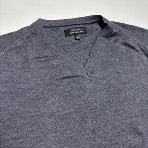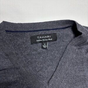 Tahari Italian Merino Wool Blend Gray V-Neck Sweater Made in Italy Mens Large