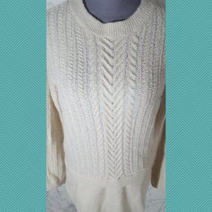 Tahari Ivory Cable Knit Tiered Crewneck Sweater Tunic