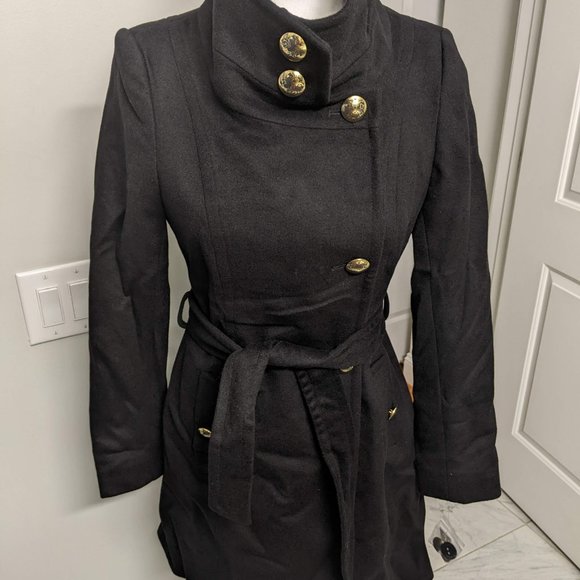 Tahari Izzy Funnel Collar Wool Blend Coat