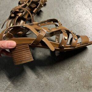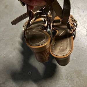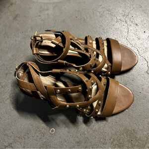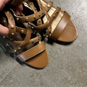 Tahari Kennedy Butterscotch Leather Studded Strappy Open Toe Heel Sandals 6.5