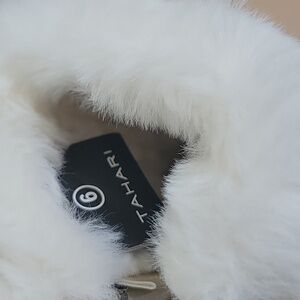 Stylish cream boots with cozy fur trim. Ideal for cold weather. Never worn, but no tags or original box, some minor scuffs to the sole as shown in the video.