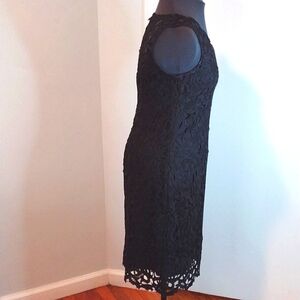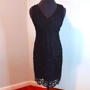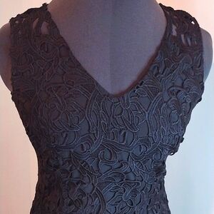 Need a LBD? Here it is!! Beautiful open lace overlay style a sleeveless dress in a flattering sheath silhouette, perfect for impressing fellow party goers!