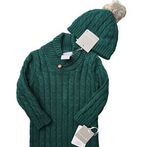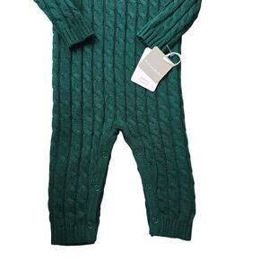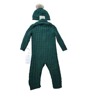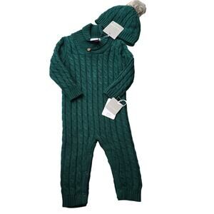 Tahari Knit Romper Set Baby 6-9 Months Green Bodysuit Hat 2-Piece Cable Knit NWT