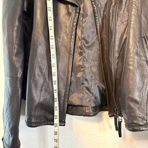 Size large. Good preowned condition, one of the zippers is missing the leather strap but otherwise great! See images for details.