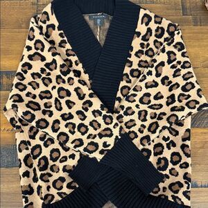 Tahari Leopard Print Open Front Cardigan Sweater - Size Small