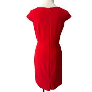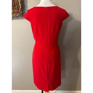 Tahari Levine Dress 12 Red Stretch Sheath Collared Short Sleeve Career Party